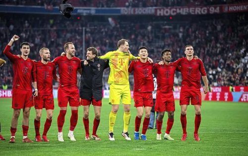 In Partylaune: Die Bayern wollen auch nach dem Stuttgart-Spiel feiern – damit die Brust breit fürs Achtelfinale wird. © Memmler/Imago