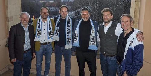 Verbindende Löwen-Leidenschaft: Gruppenfoto der Landtags-Abgeordneten mit der Sportlichen Leitung des TSV 1860. Von links: Johann Groß (Freie