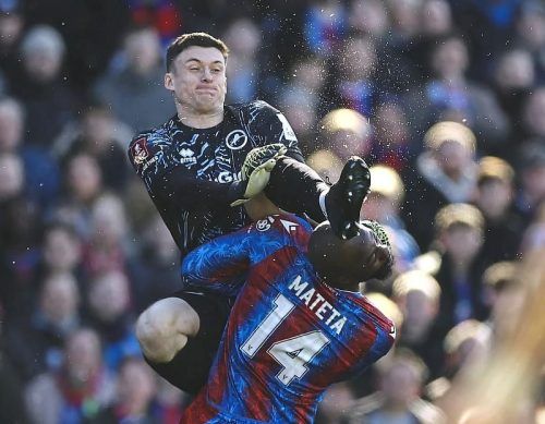London – Die Bilder sind nichts für schwache Nerven. Mit voller Wucht rauscht Millwalls Torhüter Liam Roberts mit einem Kung-Fu-Tritt in Jean-Philippe Mateta hinein, erwischt den Angreifer von C
