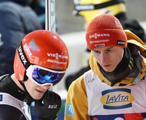 Fehlersuche: Vor allem Stephan Leyhe (li.) und Karl Geiger taten sich schwer. © Schmidt/dpa