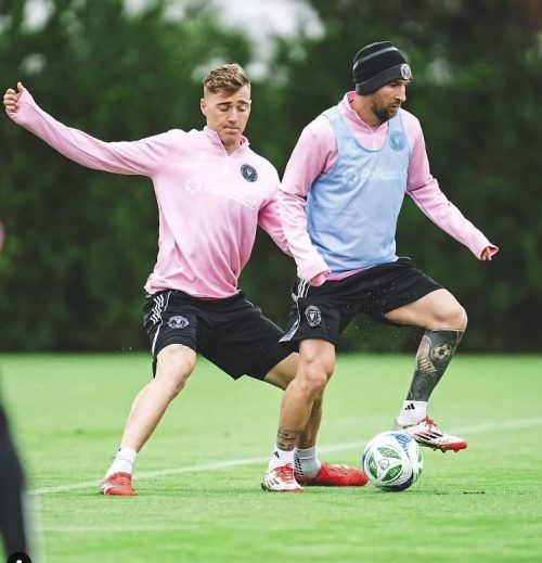 Auf täglicher Tuchfühlung mit dem Weltstar: Gressel (li.) im Training mit Argentiniens Weltmeister Lionel Messi. © Insta