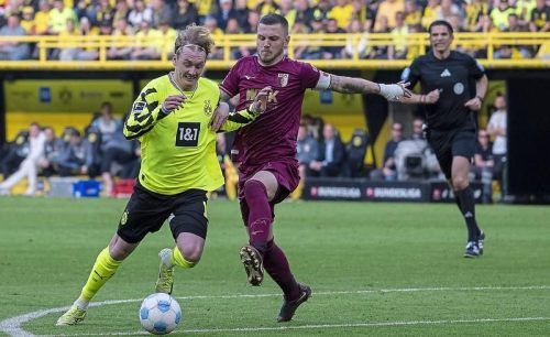 Resolut einschreiten: Jeffrey Gouweleeuw (gegen den Dortmunder Julian Brandt) beherrscht das Abwehrgeschäft. © IMAGO