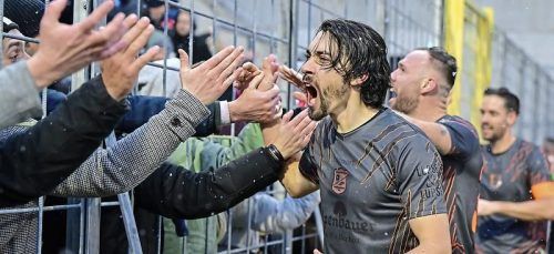 Nach dem Derby-Sieg 2024 feierte Schwabl noch mit den Fans, nun ist die Stimmung gekippt. © IMAGO