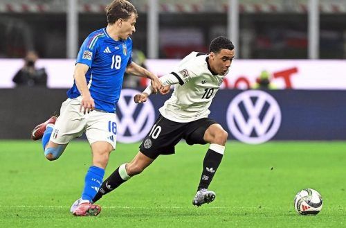 Kurz vor Ende der ersten Hälfte gab es sie wieder: eine typische Jamal-Musiala-Szene. Der Münchner trat an, die Beine arbeiteten in eine andere Richtung, als die Bewegungen des Oberkörpers es vermuten ließen, und so wand er sich um den ersten italienischen Abwehrspieler herum, den zweiten – bis der