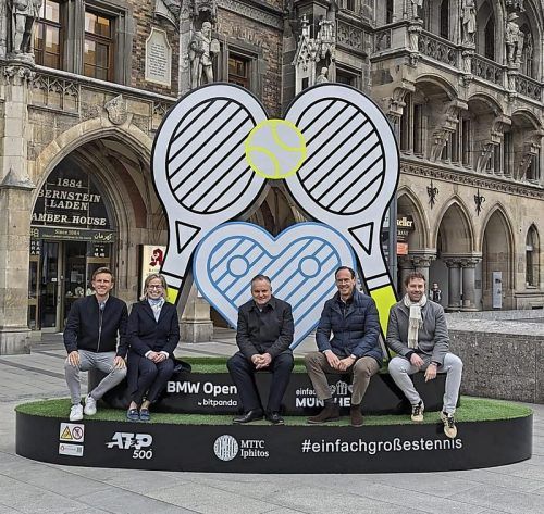 München – Ab dem 12. April werden in München bei den BMW Open die Tennisschläger geschwungen. Schon jetzt weist eine Skulptur am Marienplatz – aufgestellt von