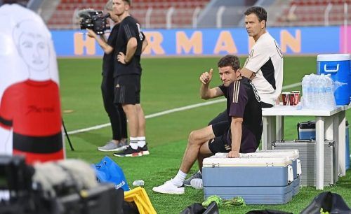 Daumen hoch: Thomas Müller mit Oliver Bierhoff (re.) könnte die Messi-Liga durchaus bereichern. © Ulmer, Penner/Imago