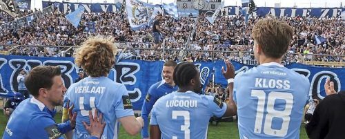 Löwen-Heimspiele machen wieder Spaß: Kapitän Jesper Verlaat & Co. nach der 5:1-Gala gegen Cottbus, gefeiert von den Fans in der Westkurve. © Sampics
