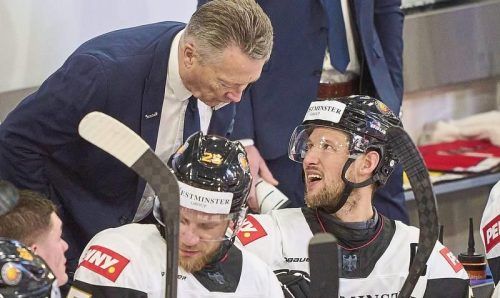„Habe den Bundestrainer überzeugen können“: Patrick Hager beim Deutschland Cup 2024 mit Harold Kreis. © IMAGO