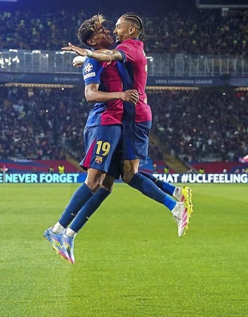 Auch beim Jubeln traumhaft: Yamal und Raphina. © IMAGO