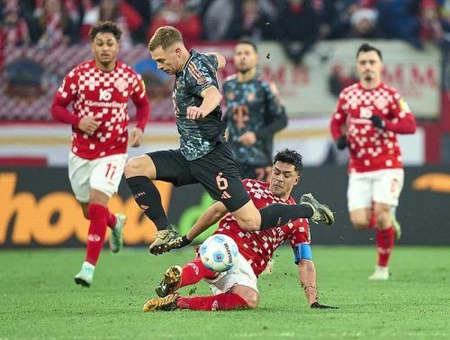 Die Mainzer wollen Joshua Kimmich (Mitte) und die Bayern am Samstag zu Fall bringen. Wie schon in der Hinrunde… © IMAGO (3)