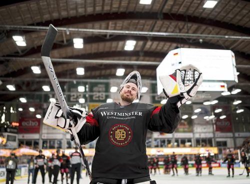 Große Gefühle im Rofa-Stadion: NHL-Torhüter Philipp Grubauer. © DEB/City-Press
