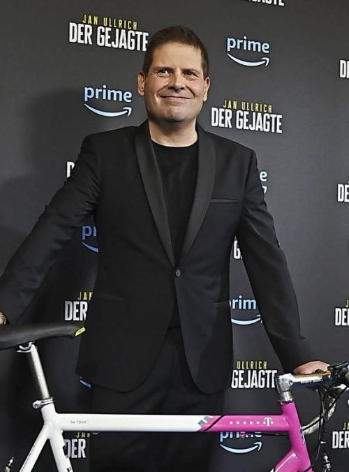 Rad-Legende Jan Ullrich im November 2023 mit seinem früheren Rad bei der Präsentation seines Kinofilms. © IMAGO/SIMON