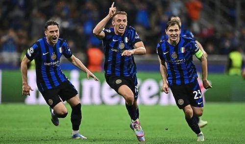 Der Höhepunkt: Davide Frattesi (mitte) entschied das Spiel zugunsten von Inter Mailand. © Imago