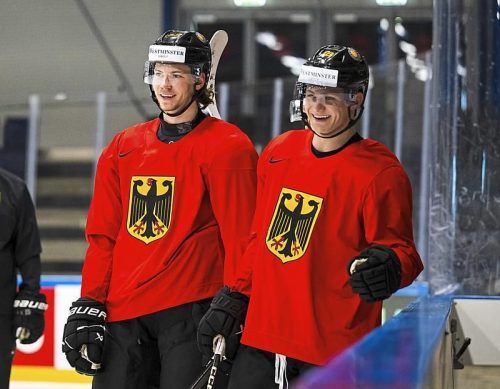 NHL-Größen am Montag beim deutschen Training: Tim Stützle (r.), Moritz Seider. © DEB/City-Press