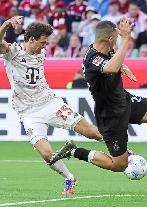 Gefällt es oder nicht? Müller (links) im neuen Auswärtstrikot, das in Orange und Weiß designt wurde. © Imago