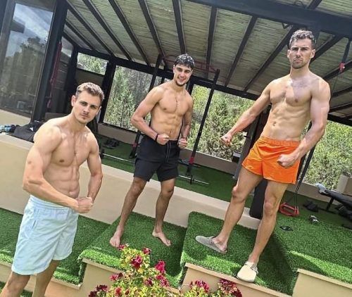 Pumpen auch auf Ibiza: Josip Stanisic (v.l.), Aleksandar Pavlovic und Leon Goretzka.