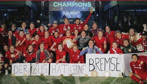 Die Double-Gewinnerinnen von Bayern München haben sich den nächsten Titel und zugleich ein sattes Preisgeld in Millionenhöhe gesichert. Die Münchnerinnen gewannen die Erstauflage des Kleinfeldturniers „World Sevens Football“ (W7F), im Finale am Freitag setzte sich der deutsche Meister mit 2:1 gegen