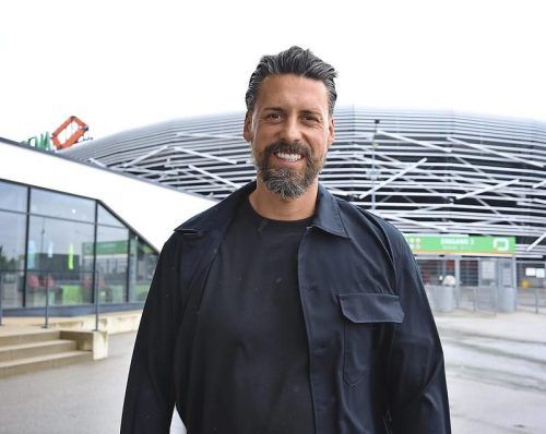 Nach der Unterschrift bis 2028: Sandro Wagner vor der Augsburger WWK Arena. © dpa/Karl-Josef Hildenbrand