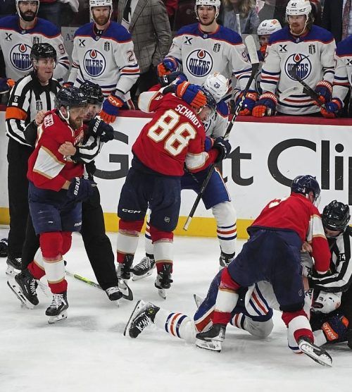 Sechs Gegentore, 85 Strafminuten: Die Edmonton Oilers um Deutschlands Eishockey-Star Leon Draisaitl stehen nach einem heftigen Rückschlag im Finale um den Stanley Cup unter maximalem Druck. Die Kanadier verloren bei den Florida Panthers mit 1:6 und liegen in der Best-of-seven-Serie mit 1:2 zurück. F