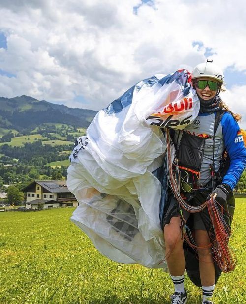 Celine startet als einzige Frau beim Fallschirm-Rennen über die Alpen