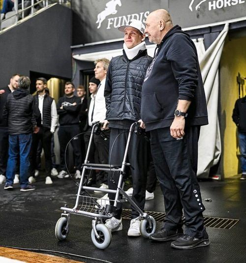 Aufmunternder Gruß von den Kollegen der Augsburger Panther, wo er zum Kader gehörte. © Sportberichte/Adrian Goldberg