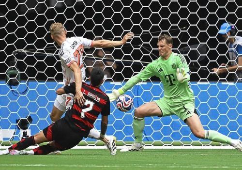 Beim Gedanken an die Szene kam auch Manuel Neuer ins Schwärmen. „Das ist ein Reflex“, sagte der Keeper stolz über seine Monsterparade gegen Flamengo Rio de Janeiro.. Neuer parierte in der 15- Minute mit einem überragenden Reflex und boxte den Ball anschließend sogar noch mit der linken Faust weg. Te