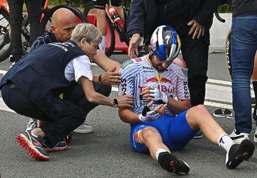 „Die erste Woche ist vermutlich die gefährlichste, weil jeder glaubt, er kann Radsport-Historie schreiben“, sagt BORA-Red-Bull-Sportdirektor Rolf Aldag – aus seinem Team erwischt es Sprinter Jordi Meeu.