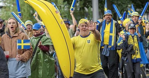Zum Feiern aufgelegt, die schwedischen Fans. © Imago