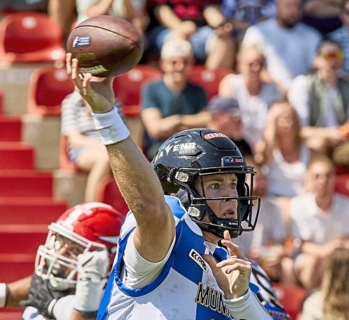 Die Munich Ravens stehen in der European League of Football weiter für Spektakel. Im letzten Heimspiel der regulären Saison gab es gegen die Madrid Bravos ein 30:27. Die Münchner stehen damit bei einer überragenden Bilanz von zehn Siegen und nur einer Niederlage. Auch wenn noch eine Auswärtspartie z