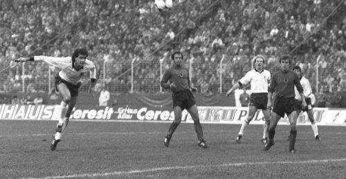 Schmach von Tirana: Die Deutschen (hier mit Hannes Löhr) torlos gegen Albanien. EM 1968 verpasst.