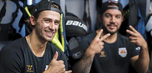 Demonstrativer Optimismus bei den Münchner Stürmerm Markus Eisenschmid (l.) und Chris DeSousa. © Red Bull/City-Press
