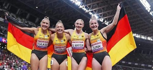 Tokio – Die deutsche Frauen-Staffel über die 4×100 Meter hat bei den Leichtathletik-Weltmeisterschaften in Tokio Bronze gewonnen. Das Quartett mit Sina Mayer, Rebekka Haase, Sophia Junk und Gin