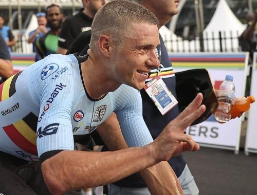Victory-Zeichen: Remco Evenepoel. © AFP/POUJOULAT