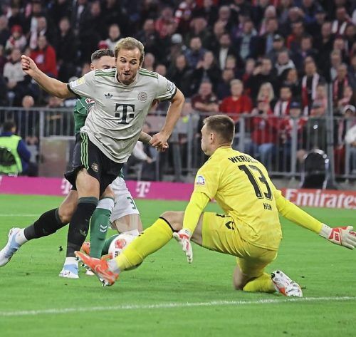 Alle 37 Minuten ist Harry Kane an einem Treffer der Bayern beteiligt. Gegen Bremen traf er doppelt – zum 99. und 100. Mal. © Haust/IMAGO