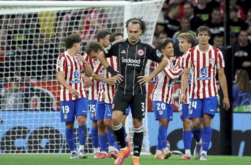 Deftige Pleite statt erneuter Fußball-Party: Eintracht Frankfurt hat das Gastspiel bei Atlético Madrid mit 1:5 (0:3) verloren und nach dem starken Auftakt einen herben Dämpfer in der Champions League kassiert. Giacomo Raspadori in der 4. Minute, Robin Le Normand (33.), Antoine Griezmann (45.+1), Giu