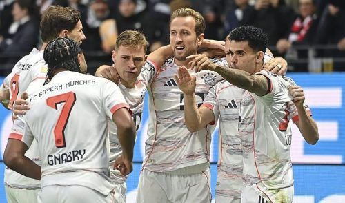 Wenn‘s läuft, dann läuft‘s: Die Bayern-Offensive überrollt jeden. Dabei fehlt bislang einer der besten Akteure. Die Rolle von Musiala übernehmen derzeit Kane (M.) und Gnabry. © Hörmann/IMAGO