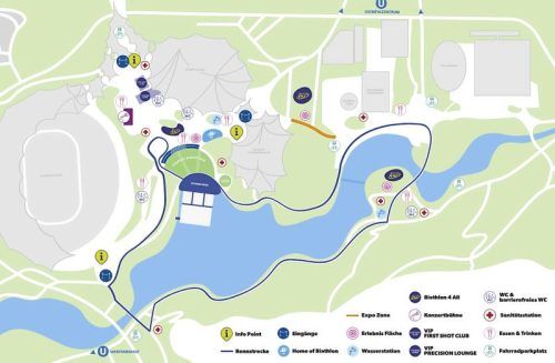 Einmal rund um den See: Im Olympiapark wird am Sonntag eine 1,8 Kilometer lange Strecke gelaufen, geschossen wird am Ufer des Amphitheaters. © IBU