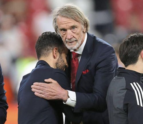 In meine Arme: Ratcliffe (r.) mit Trainer Amorim. © IMAGO