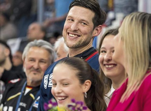 Das Strahlen des Jubilars: 1000-Spiele-Mann Patrick Hager im Kreis seiner Familie. © Red Bull/City-Press