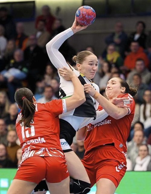 Durchschlagkräftig: WM-Neuling Nieke Kühne im Vorbereitungsduell gegen die Schweiz. © Wolf/Imago