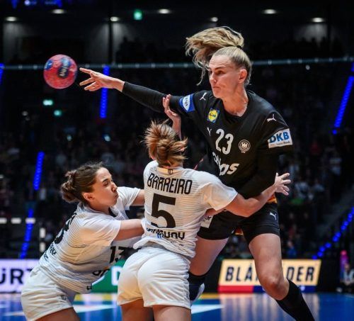 Stuttgart – Angeführt von den Team-Küken Nieke Kühne und Nina Engel haben Deutschlands Handballerinnen mit einem ungefährdeten 38:12 (15:7)-Sieg gegen Uruguay am Freitag vorzeitig