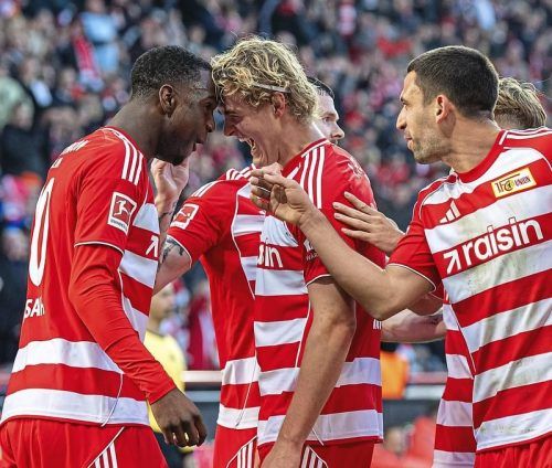 Beste Erinnerungen: Ansah und Rothe beim 2:2 gegen die Bayern. Der Rekordmeister stellt sich auf ein erneut schweres Spiel ein. © Räppold/Koch/