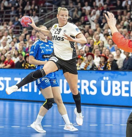 23 Tore bei 26 Würfen: Die treffsichere Polizistin Antje Döll spielt eine starke Heim-WM und will sich mit dem DHB-Team vorzeitig fürs Viertelfinale qualifizieren. © Schmid/Imago