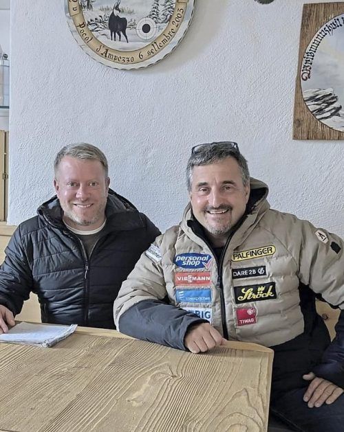 Reporter Tobias Ruf traf Rodel-Legende Georg Hackl vor den ersten Tests in Cortina. © Ruf