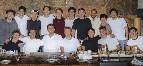 Diniert wurde im Japaner Zuma Abu Dhabi – obere Reihe von links: Pierre Gasly, Esteban Ocon, Lando Norris, George Russell, Oscar Piastri, Gabriel Bortole