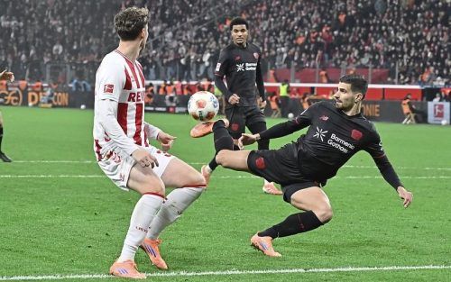 „Wenn es so gewollt war, war es Weltklasse“: Leverkusens Martin Terrier besorgte das 1:0 auf spektakuläre Art, mit einem „Scorpion-Kick“. © IMAGO/TEAM2