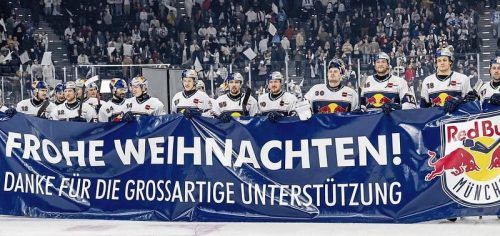 München – „Frohe Weihnachten“ stand auf dem Transparent, das die Spieler des EHC Red Bull München nach dem 3:1-Sieg gegen die Schwenninger Wild Wings vor der Fankurve