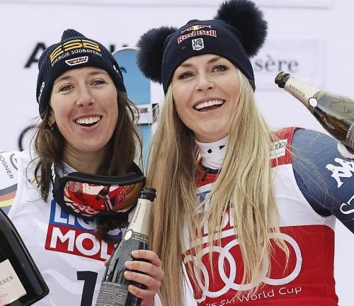 Endlich wieder unter den besten drei: Kira Weidle-Winkelmann mit Lindsey Vonn. © Horcajuelo/EPA