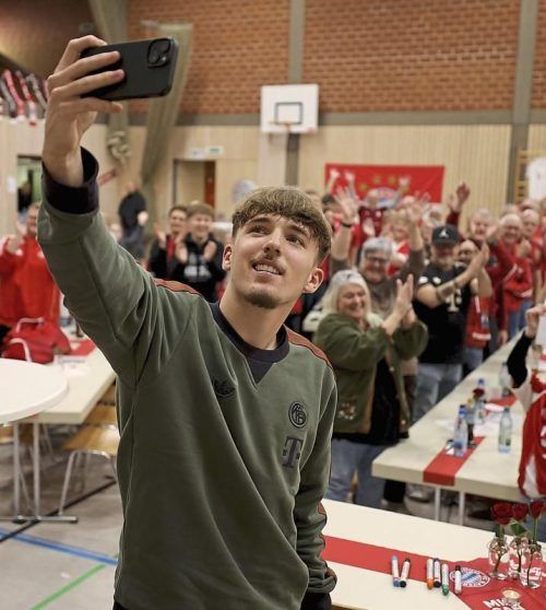 Bayern-Youngster Lennart Karl am Sonntag beim Fanclub-Besuch im unterfränkischen Burgsinn. © Christ/Imago