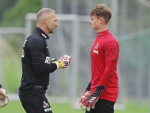 Ex-Bayer Uwe Gospodarek trainiert von 2021 bis 2023 in Köln mit Jonas Urbig – dem designierten Nachfolger von Manuel Neuer im Münchner Tor. © Bucco/Imago